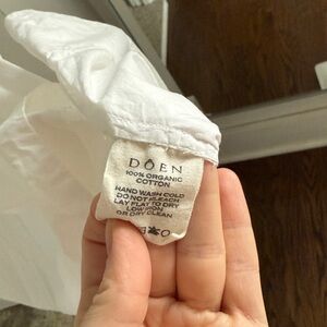 I don’t see any major stains/discoloration. There’s one small faint mark on the hem that might come out with washing. Please ask any additional questions if you have them.