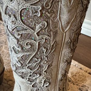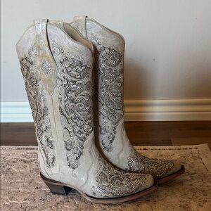 Corral White Glitter Inlay And Crystals Womens Boots Size 6.5