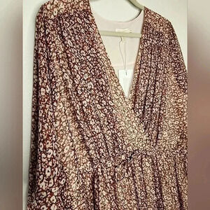 Ted Baker Vallyy Draped Surplice V-Neck Drawstring Waist Long Sleeve Floral Print Midi Dress size 3