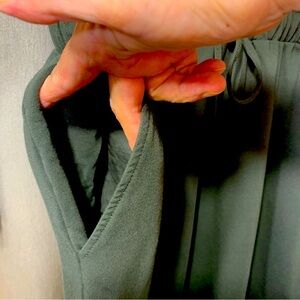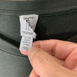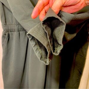 In great pre owned condition. Minimalist long sleeve dress by Tristan. Neutral green. Comfy stretch jersey made with Modal cotton. Features a drawstring waist with elastic. Side pocket. Subtle ruffle hem. Perfect for versatile styling. Please see picture **The tag has been torn, the dress is in fabulous condition.