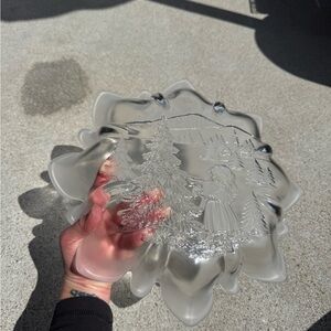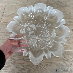 This elegant decorative Christmas serving platter features a charming winter scene, perfect for adding a touch of sophistication to your home decor. The intricate design showcases a serene landscape, making it a beautiful centerpiece for any table. Has frosted flute edge - so pretty and festive!! This is a vintage and discontinued style (Christmas Story). Made in Germany. In excellent condition. No chips or imperfections and with original box. Box is worn.