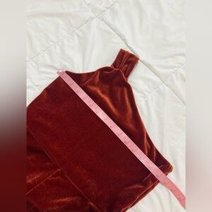 This luxurious jumpsuit from Banana Republic features a rich brown velvet fabric that exudes elegance. The one-shoulder asymmetrical neckline and wide-leg palazzo pants create a sophisticated silhouette, perfect for formal occasions.