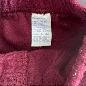 Good condition, slight piling as pictured. Adorable burgundy baby outfit featuring cute bear embroidery. Perfect for infants 0-6 months.