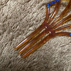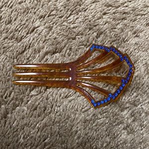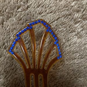 VTG Art Deco Celluloid Blue Rhinestone Hair Fork Comb