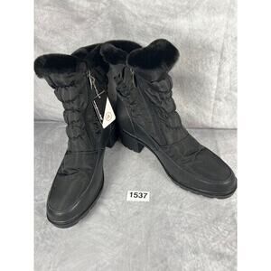 This pair of Religious Comfort boots is perfect for women who want both style and comfort. The black rubber material gives the boots a sleek and modern look, while the short boot style adds a touch of playfulness to any outfit. The boots are available in size 11M and are designed with a heel height for added support. The brand is known for their high-quality footwear, and this pair is no exception. They are perfect for everyday wear and can be dressed up or down depending on the occasion. Whether you're running errands or going out for a night on the town, these boots are a must-have addition to your wardrobe. (1537)