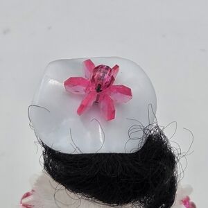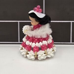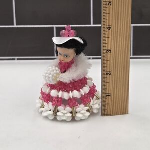Vintage Safety Pin Doll Figurine Brunette Pink And White GLOWS