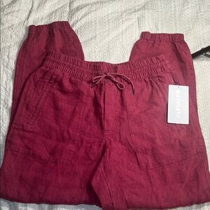 Comfortable pink linen pants with a stylish design. Ideal for everyday wear.