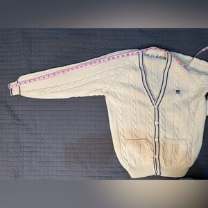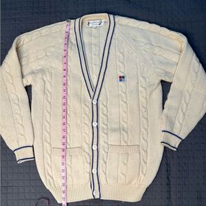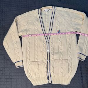 Vintage 80s Preppy CableKnit Wool Cardigan Sweater Quattro Quadrai for Crocodile
