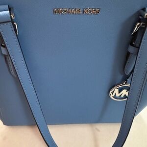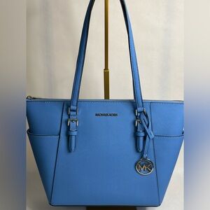 NWT Michael Kors Charlotte Blue Saffiano Leather Tote Bag