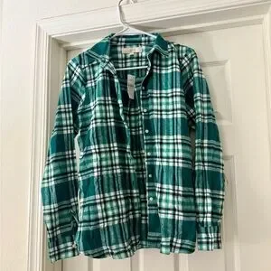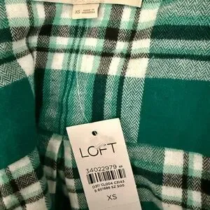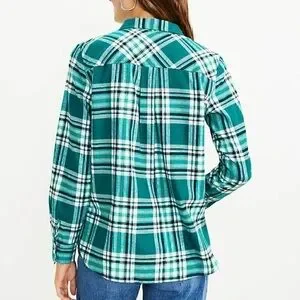 NWT LOFT Green Teal & White Plaid Flannel Shirt - XS