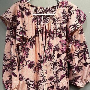 FREE PEOPLE Sunbaked Floral Long Sleeve Swing Minidress in Peach Combo Size M