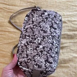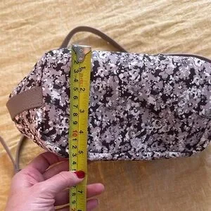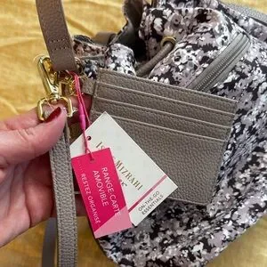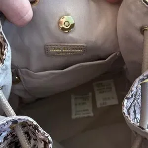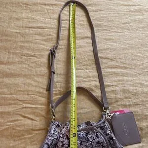 Elegant floral crossbody / handbag with drawstring closure. Features a front pocket and gold-tone accents. Perfect for versatile styling. Please see attached video and pics to verify condition and for details.