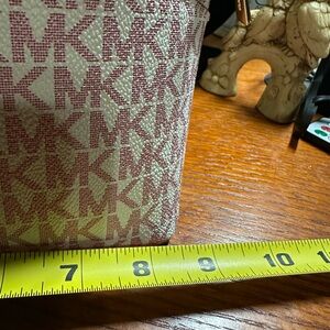 Elegant crossbody with signature MK pattern. Features red accents and gold chain strap. Ideal for everyday use. NWT
