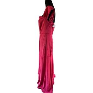 Step out in style with this chic pink maxi dress. Its cap sleeve design offers a modern touch, perfect for any occasion.