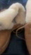Soft tan suede moccasins. Features plush cream lining. Ideal for cozy wear. I can’t find a size but I’m usually a 9-9.5. Stylish. Signature embossed. Worn maybe twice. Different. Flat but no issues when wearing.