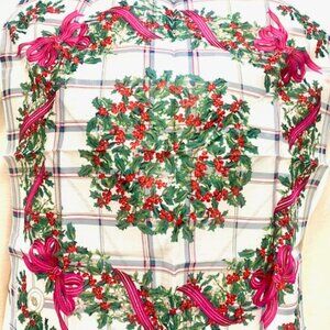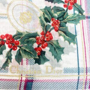 #98 New -Unused Christian dior MiniScarf/Handkerchief 19 " cotton made, color green white red bow ottoman christmas decorate design with logo accent.
