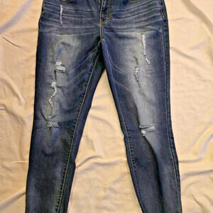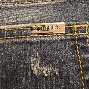 Jennifer Lopez Jeans Women 10 Blue Denim Straight Crop Stretch Distress 98-3