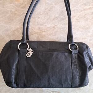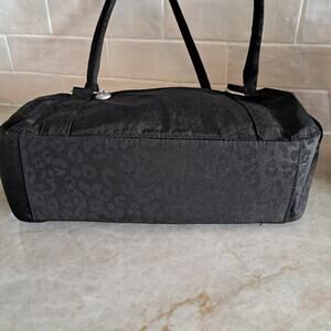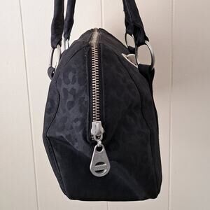 Perfect for travel or everday use, this Baggallini doubld handled Sienna Satchel comes in a black on black cheetah / leopard print that's a modern classic.
