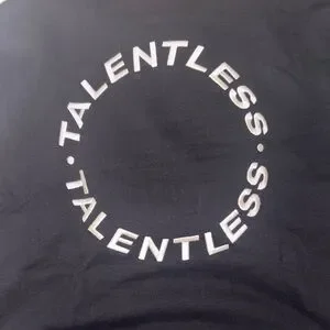 Classic black sweatshirt featuring a bold white TALENTLESS logo. Comfortable and stylish.
