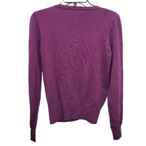 Audrey & Grace Women's Purple Silk Blend Rosette LS Button Up Knit Cardigan Sz S