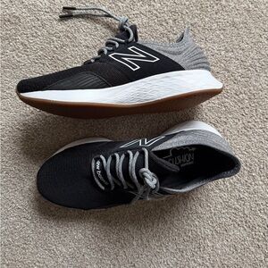 Sleek New Balance shoes in black and white. Ideal for active wear.