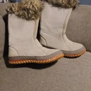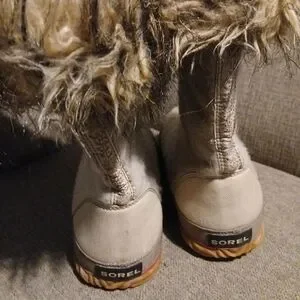 Sorel Womens Faux Fur, Tan Boots. Size 10