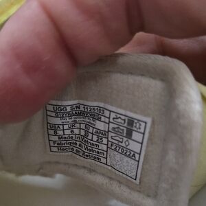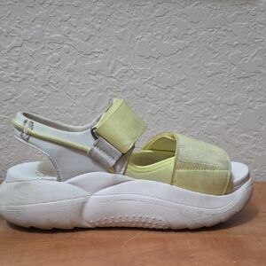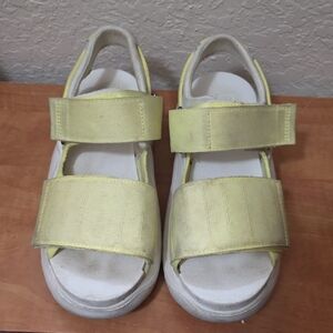 Bright yellow and white sandals by UGG. Easy to wear and very comfortable. They are like a cloud. Great condition just dirty.