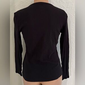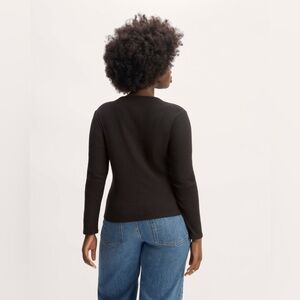 This piece features a slim fit, long sleeves that hit at the wrist, crewneck with button placket in a lightweight, vintage-inspired variegated rib-knit.