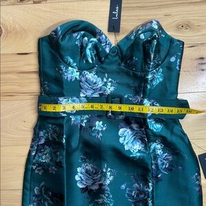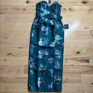 NWT Lulus Emerald Floral Taffeta Belted Strapless Maxi Dress | Size Medium. Structured material, no stretch
