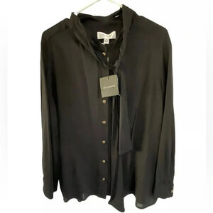 ST JOHN Black Button Up Blouse Sheer Long Sleeve Size XL Business Preppy New