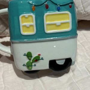 Too cute! This adorable RV coffee mug is perfect for all the Happy Campers in your life! No cracks or chips. Nice handle. It has a Christmas wreath and lights. Fun rectangle shape.