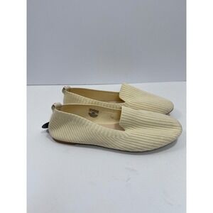 Women's Natural Ribbed Smoking Loafer Sz 9 Cream Almond Toe Slip on Ballet Flats Workwear Preppy Comfort Minimalist Casual Shoes