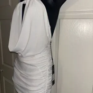 Chic and stylish mini dress. Features a halter neckline. Perfect for a night out.