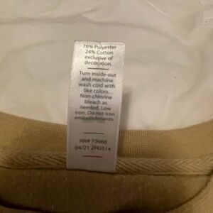 Arkansas sweatshirt in women’s small. Tan with black sewn on letters. No tears or stains. A little pilling that can be removed with a sweater shaver.