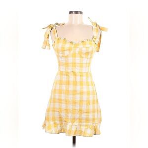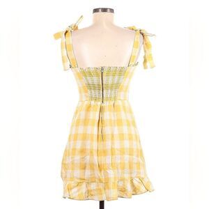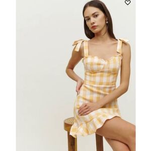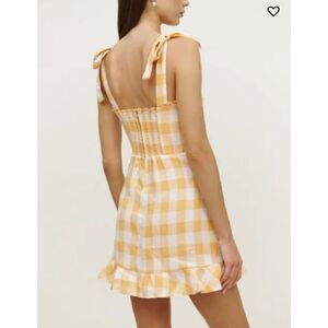 Reformation Desiree Linen Dress in Dandelion Check Yellow 6