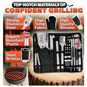 Stainless Steel BBQ Grill Tool Set with Black Case