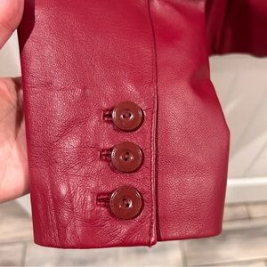 Stylish red leather jacket with button closure in excellent condition. 2 spare buttons are included inside the jacket.