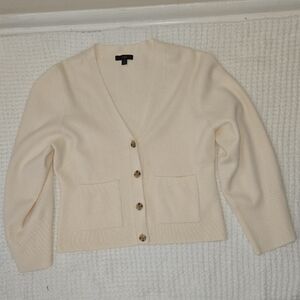 Chic cream cardigan with button front. Perfect for layering. Timeless style from J. Crew.