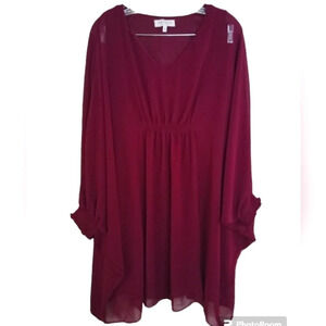 Hayden Los Angeles Burgundy Bat Wing Sleeve Sheer Dress Size Medium