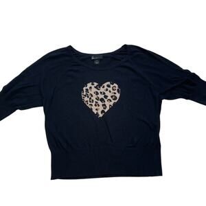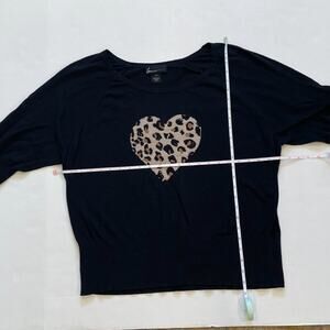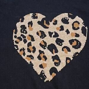 Lane Bryant Cotton Blend Black Short Sleeve Sweater with Animal Print Heart Detail on Front, Size 18/20