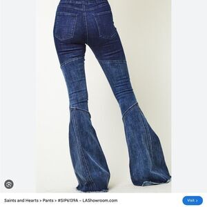 EXCELLENT CONDITION SAINTS & HEARTS BELL BOTTOM JEANS IN BLUE DENIM