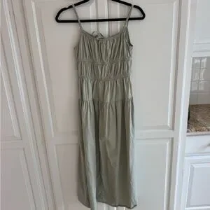 This elegant sleeveless dress features a flattering silhouette and a soft green hue, perfect for any occasion. Enjoy the comfort and style it brings to your wardrobe. Great condition!