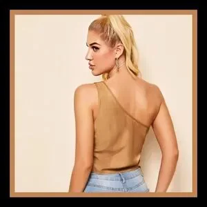Shein ✦ Satin Gold One-Shoulder Cropped Top ✦ XS Side Zip Asymmetric Silky NWT