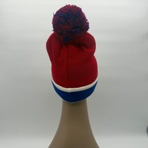 Red/blue "Texas" knit pom beanie with bold script logo and cuffed hem that reads TEXAS for a classic game-day / winter streetwear look. Chunky acrylic knit with a big two-tone pom on top—warm, soft, and easy to throw on for cold weather, travel, tailgates, ski trips, or everyday errands. Tag shows 100% acrylic, made in China (see photos). One size fits most adults; unisex style that works for men or women and looks great with denim jackets, hoodies, varsity fits, and sporty y2k/blokecore outfits. Great gift for Texas fans and collectors. New with tags—please review photos for exact condition.
