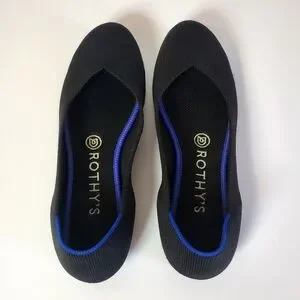 Rothy's The Flat in Black With Blue Trim Slip On Shoes