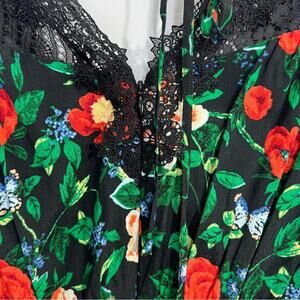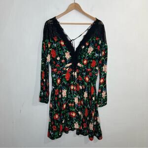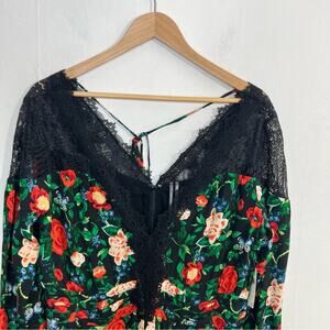 NWT Anthropologie Lacy V-Neck Mini Dress in Black Floral Motif Women’s Size 14