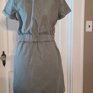 Zip front Chino dress. This easy shirtdress zips up the front and has pockets and a smocked waist. Army green. Excellent condition.