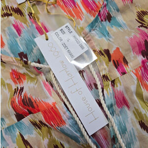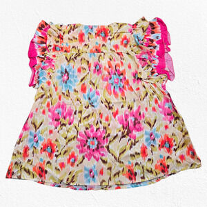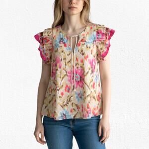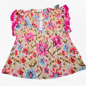 House of Harlow Pink Floral Zoey Khaki Floral Ruffle Sleeve Blouse Size Large