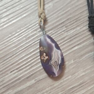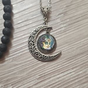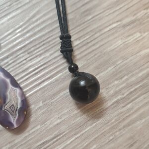 Cresent moon, purple agate, and black obsidian pendant necklace set.