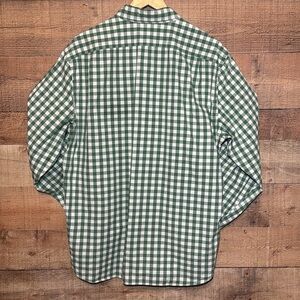 J.Crew Flex Washed slim fit, long sleeved shirt. Men's size XL. Green and white gingham checkered. Button down front and button down collar. 98% cotton and 2% Elastane. Pre-loved great condition.
